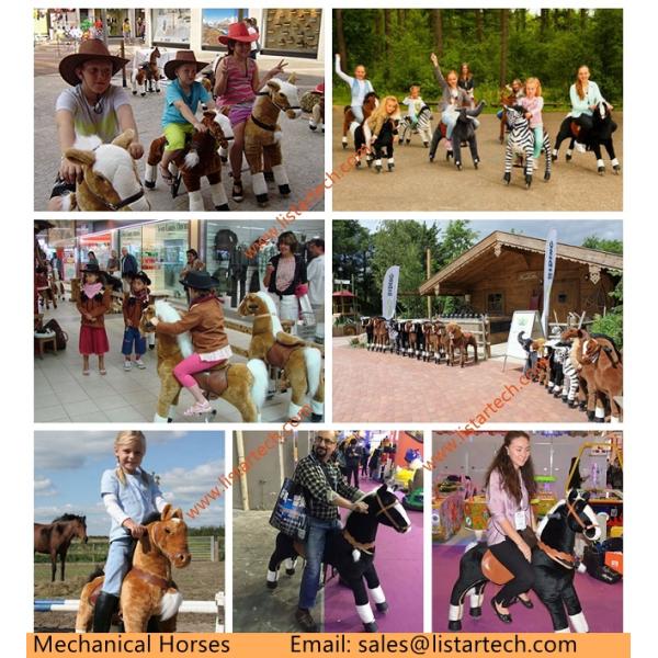 continually, just like the action of riding real horse. They are healthy mobility devices that offer fun and enjoyment for children. That will improve children's coordination ability and balance ability when riding. Children will touch it, hug it, riding it. They love this walkable real horse very much.